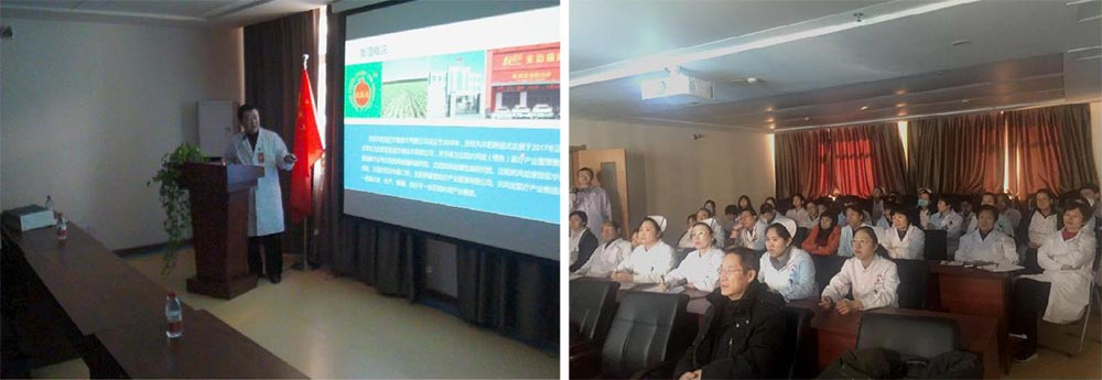 2018年2月27日,抗風(fēng)竤醫(yī)療集團董事長張芮袀先生,應(yīng)遼寧省腫瘤醫(yī)院原院長羅婭紅和中西醫(yī)結(jié)合院趙翔院長的邀請為部分專家和醫(yī)護人員進行了《雌性紅蘿卜 綠色食物療法治療癌癥》的經(jīng)典案例分享。