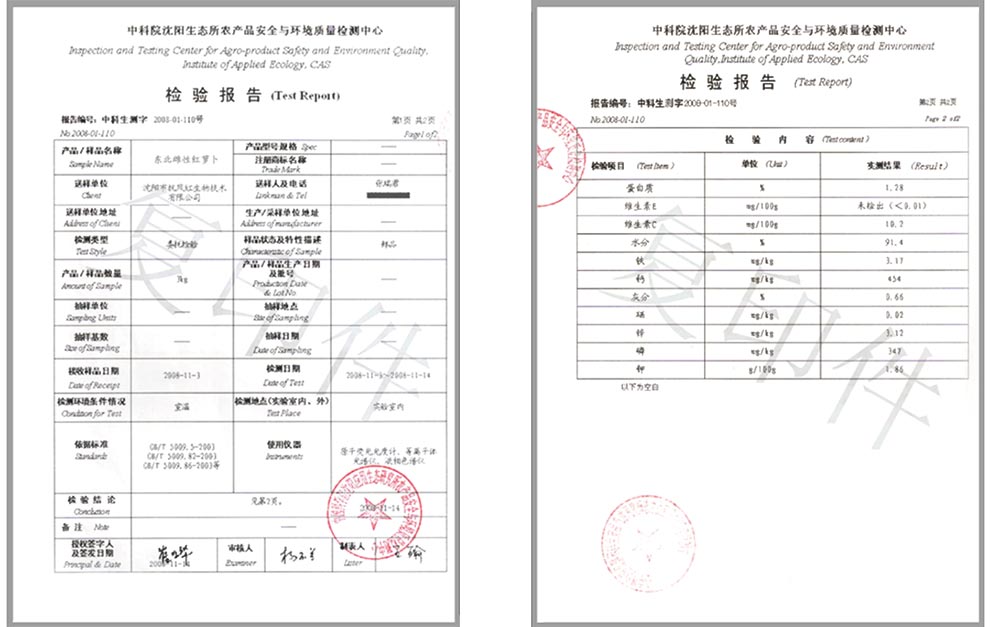 東北雌性紅蘿卜營養(yǎng)檢測報(bào)告